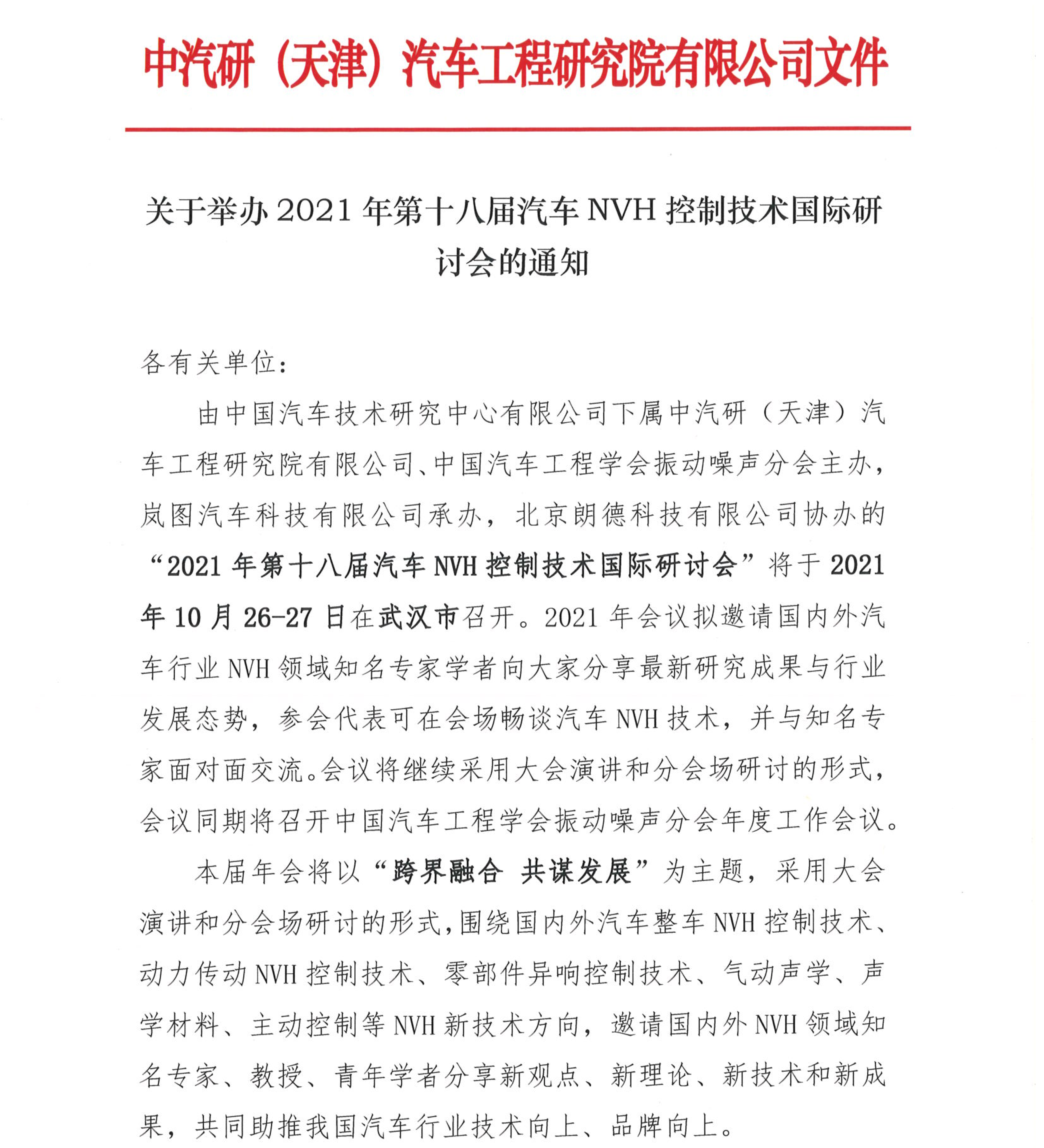 關于舉辦2021年第十八屆汽車NVH控制技術國際研討會的通知