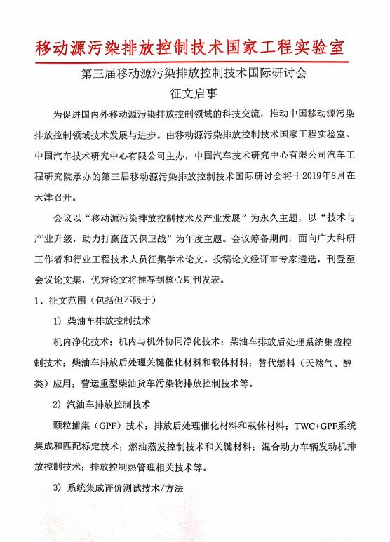 第三屆移動(dòng)源污染排放控制技術(shù)國際研討會(huì)征文啟事