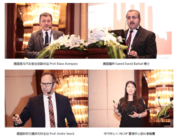 會議邀請德國寶馬汽車安全部副總監Prof. Klaus Kompass做了《自動駕駛的安全考慮》的主題報告,中汽中心標準所劉桂彬副總工程師介紹了中國電動汽車標準的現狀與未來的發展、中汽中心C-NCAP管理中心李維菁部長介紹了CNCAP的最新變化與未來趨勢,德國戴姆勒奔馳Jochen Feese分享了他們對中國交通安全的研究以及戴姆勒奔馳汽車公司的安全技術,美國福特Saeed Barbat博士分享了福特的動力電池建模和測試方法,國軒電池林志宏院長分享了動力電池的開發與安全性,德國聯邦交通研究所主任Prof. Andre Seeck分享了ENCAP關于主動安全、被動安全、行人保護的現狀以及ENCAP的未來規劃、德國Britax全球技術總監Farid Bend jellal介紹了ENCAP關于兒童保護的要求與提高中國兒童道路安全的思考、GlobalAutoRegs的John Creamer分享了美國NCAP的現狀與未來以及聯合國WP29關于自動駕駛安全性的討論現狀、東盟NCAP秘書長Dr. Khairil Anwar Bin Abu Kassim介紹了東盟NCAP的現狀與未來規劃以及東盟國家的摩托車安全問題。會議共邀請國內外汽車安全行業的三十余位專家分享了最新的汽車安全技術成果。