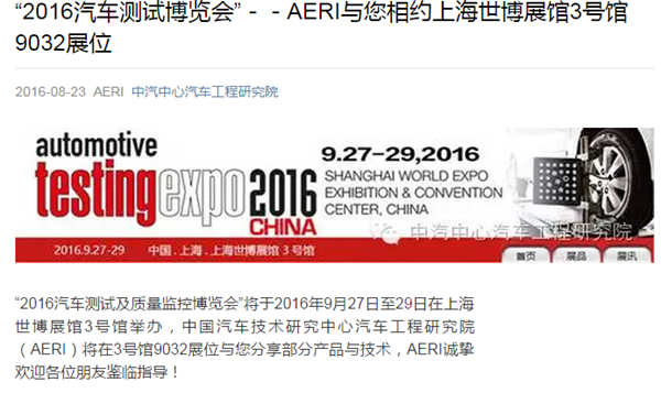 2016汽車測試博覽會 - - 工程院與您相約上海世博展館3號館9032展位