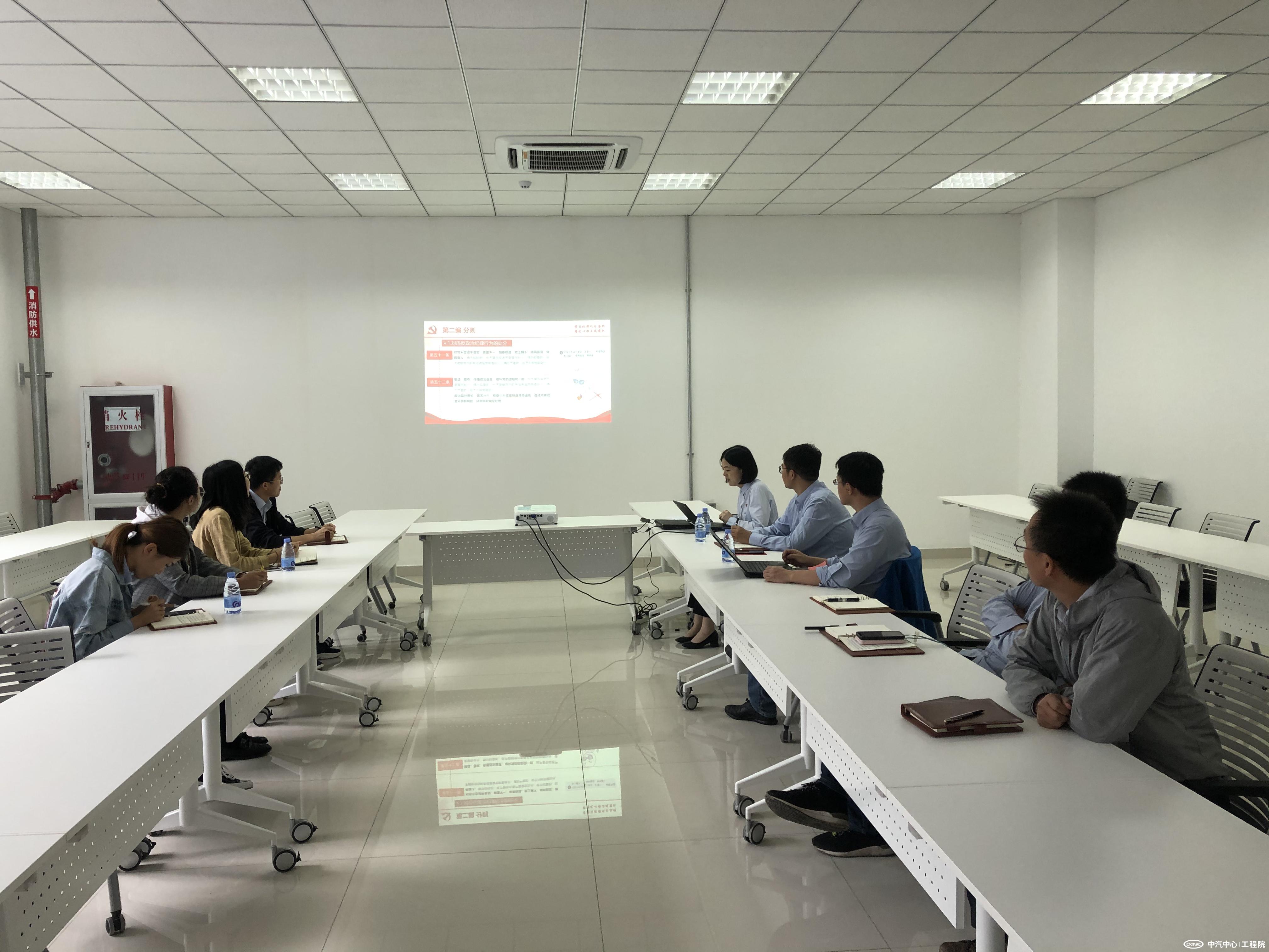黨課結束后,由第六支部紀檢委員劉學龍對第六支部全體在津黨員、群眾進行廉潔從業教育。劉學龍同志從國家、中汽中心以及第六支部三個層面解讀當前反腐倡廉建設形勢和任務,帶領大家一起學習工程院財務報銷相關制度,對大家關心的問題進行詳細解讀。活動最后,全體人員共同觀看廉潔從業警示教育片《欲望的代價》。