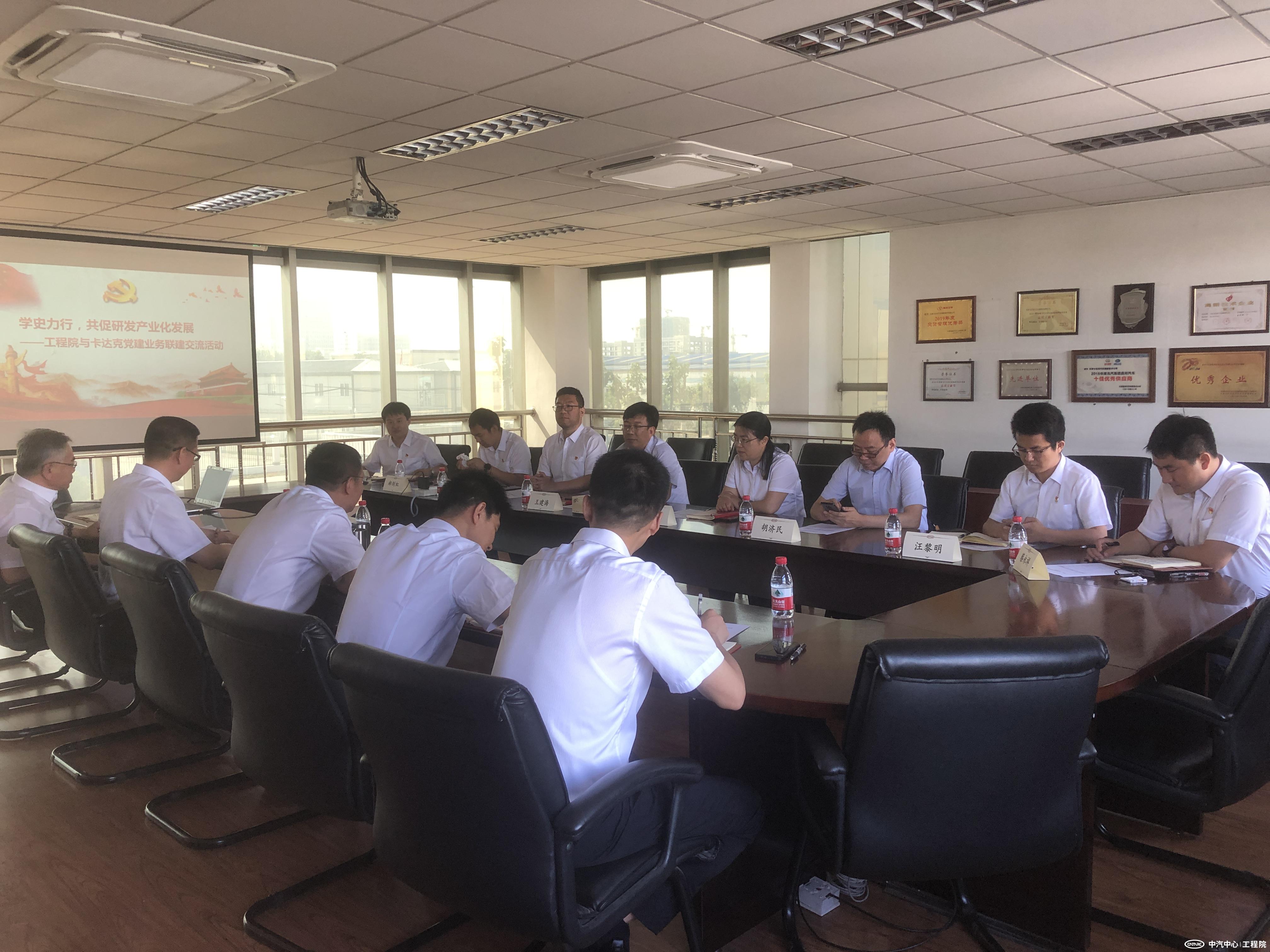 為加強(qiáng)中心內(nèi)部院所間黨建與業(yè)務(wù)聯(lián)建交流,打通業(yè)務(wù)壁壘,搭建合作橋梁,切實(shí)做到以高質(zhì)量黨建引領(lǐng)高質(zhì)量發(fā)展,6月11日,中汽研(天津)汽車(chē)工程研究院有限公司(簡(jiǎn)稱(chēng)“工程院”)與天津卡達(dá)克汽車(chē)高新技術(shù)有限公司(簡(jiǎn)稱(chēng)“卡達(dá)克”)組織開(kāi)展黨建與業(yè)務(wù)聯(lián)建交流活動(dòng)。工程院黨委書(shū)記、總經(jīng)理王建海,卡達(dá)克高新公司黨支部書(shū)記、總經(jīng)理李陸山,及雙方黨組織班子成員、相關(guān)部門(mén)人員參加活動(dòng)。